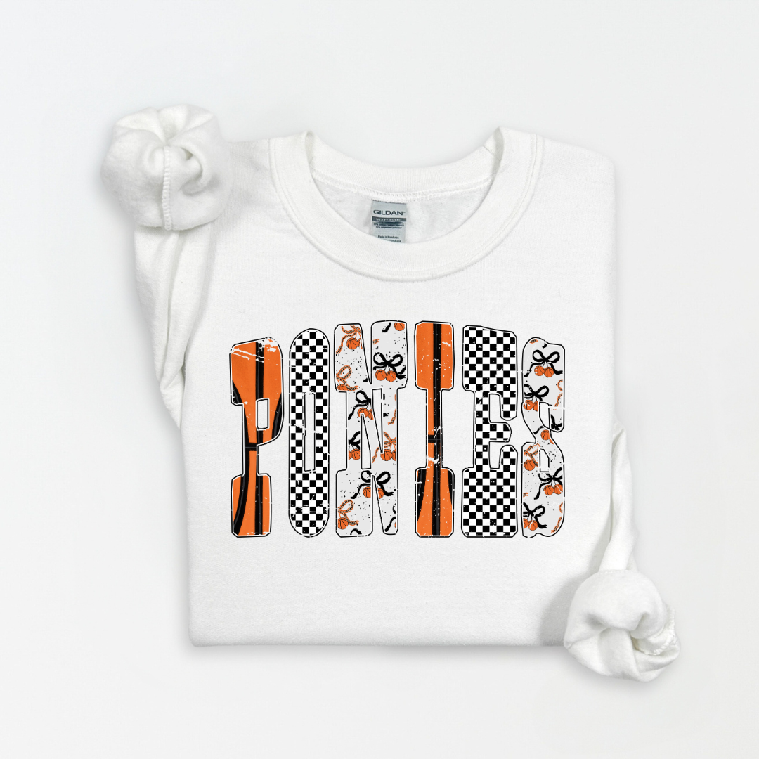 Own your team identity with our Ponies apparel, featuring bold basketball-inspired typography that demands attention! This collection showcases the Ponies name in a distinctive font designed for the court and beyond. Clean, confident, and unmistakably athletic, each piece is a statement of loyalty and style. Whether you're a player, fan, or supporter, this gear lets you rep the Ponies with authentic flair. Simple, striking, and made for those who know what it means to be part of the herd!